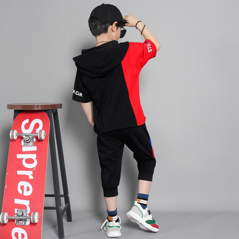 Children's clothing summer new boy short-sleeved suit in the big boy summer Korean version of the boy stitching sportswear tideChildren’s clothing summer new boy short-sleeved suit in the big boy summer Korean version of the boy stitching sportswear tide