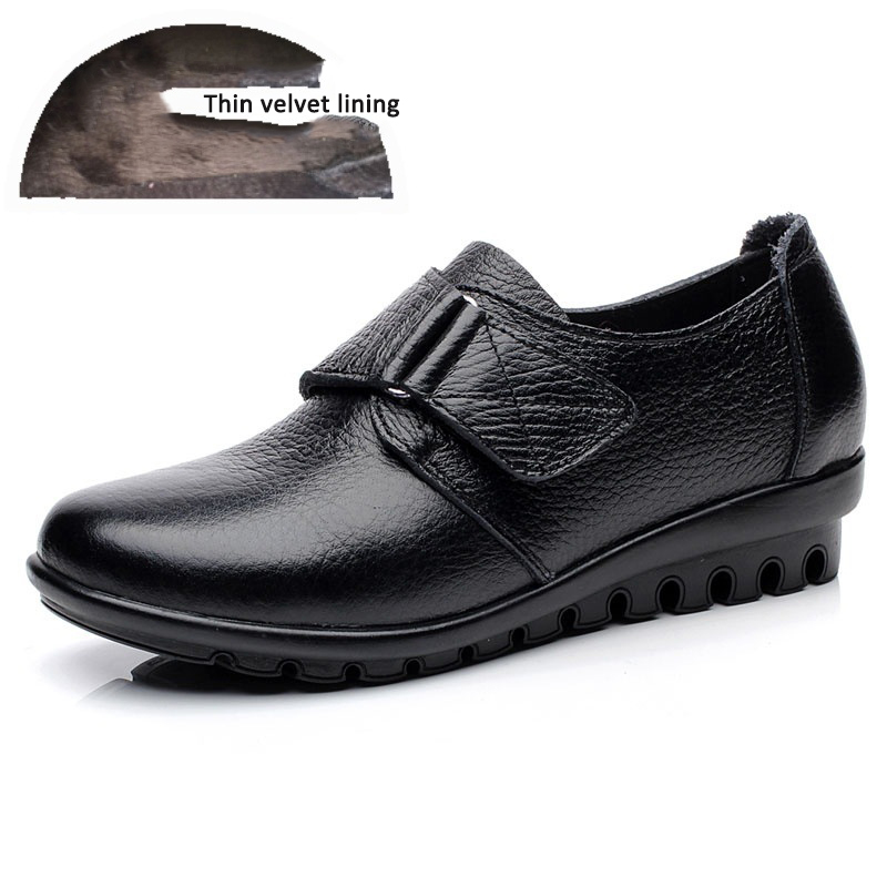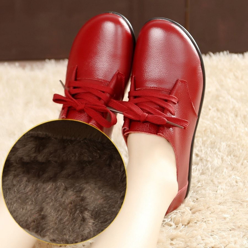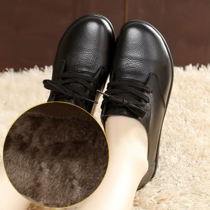 Single shoes for middle-aged and elderly non slip flat leather shoes winter warm cotton shoes