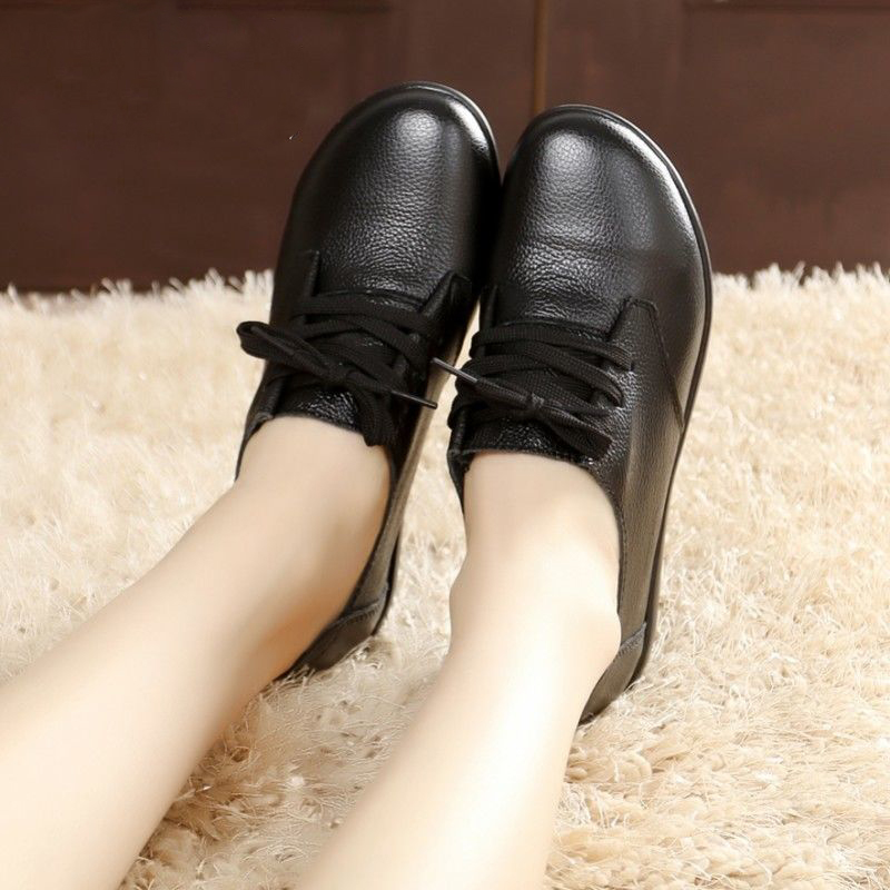 Single shoes for middle-aged and elderly non slip flat leather shoes winter warm cotton shoesSingle shoes for middle-aged and elderly non slip flat leather shoes winter warm cotton shoes